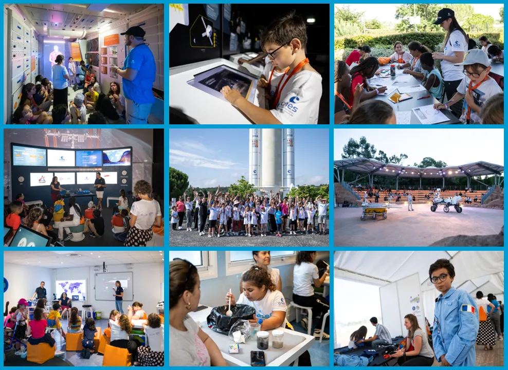 Les 8 et 9 juillet 2023, à Toulouse (Haute-Garonne) et en partenariat avec la SEMECCEL, 40 jeunes d’Occitanie ― dont 70% de filles― ont passé deux journées immersives à la Cité de l’espace. Au programme, de nombreux ateliers pour couvrir le large spectre des activités spatiales présentes sur Terre et dans l’espace. Et pour la première fois depuis sa création en 1997, enfants et parents ont pu dormir à la belle étoile au pied de la maquette d’Ariane V de la Cité de l’espace !