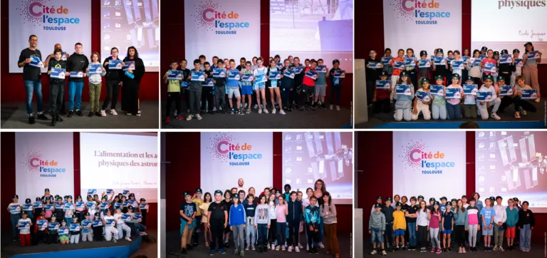 Les jeunes se sont vu remettre leur diplôme de participation et ont présenté les activités qu’ils et elles ont réalisées en classe, sous l’œil attentif de Sébastien Rouquette, expert CADMOS du CNES supervisant une partie des expériences européennes réalisées à bord de la Station Spatiale Internationale (ISS).