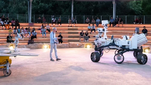 Le vendredi 8 avril, c’était la journée de débriefings pour les 9 classes qui ont pu être présentes à la Cité de l’espace. Les élèves ont restitué le fruit de leurs efforts devant les autres classes et vérifié en direct le déplacement du rover sur Mars à partir de la trajectoire qu’ils avaient imaginée ! Ils ont ensuite découvert le nouveau Terrain Martien de la Cité de l’espace et son animation, les Rovers entrent en scène ! Avec l’accompagnement de leur marraine Agnès Cousin, astronome de l’IRAP – Institut de Recherche en Astrophysique et Planétologie.