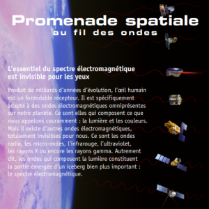 Domaine visible, radio, micro-ondes, infrarouges, ultraviolets, rayons x et rayons gamma, les ondes sont omniprésentes sur terre et dans l’Univers. Le CNES a réalisé cette présentation du spectre électromagnétique et de son application dans le domaine spatial dans le cadre de l’année de la physique.